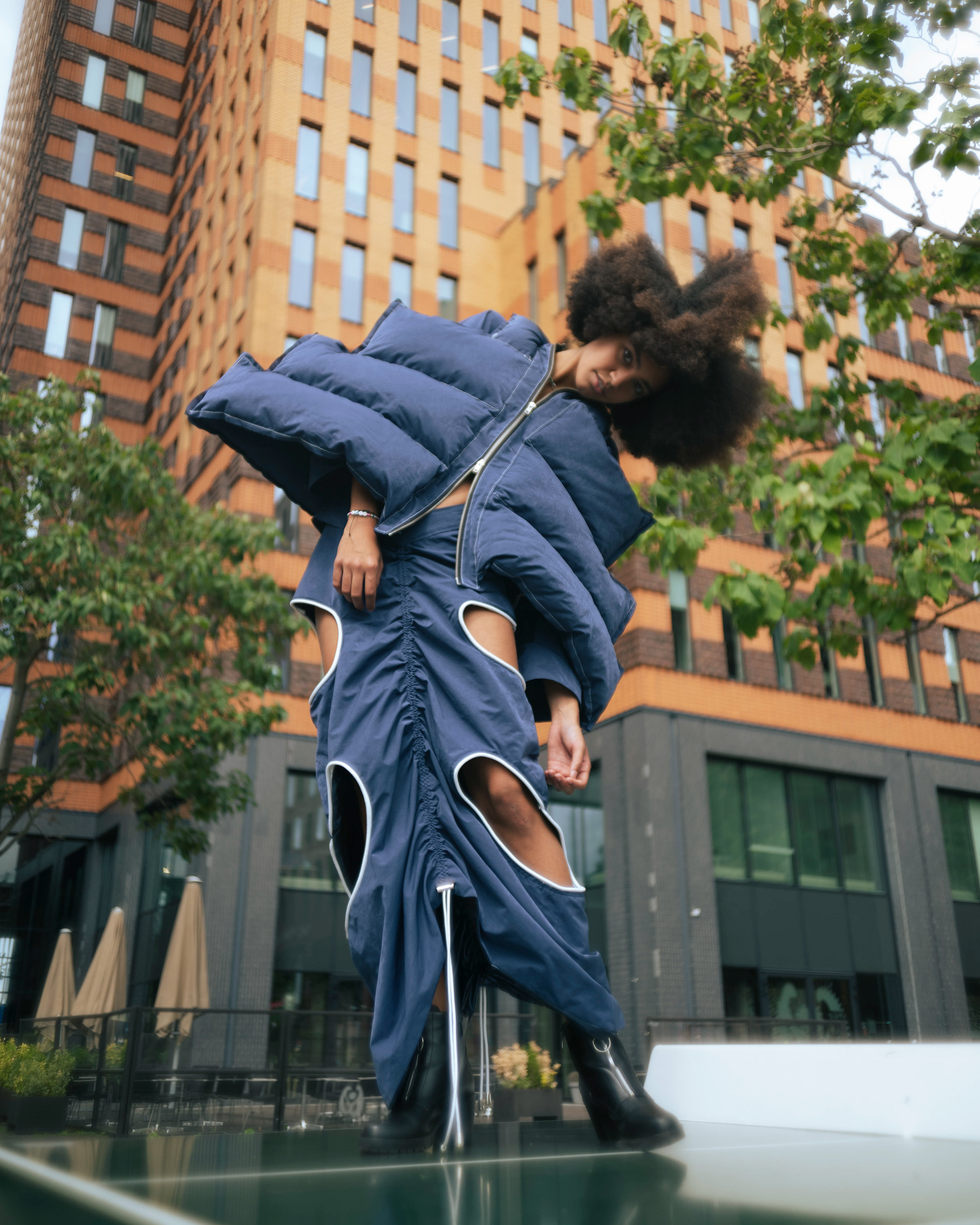 By opening up the zippers, you can customize the skirt to create a different look.